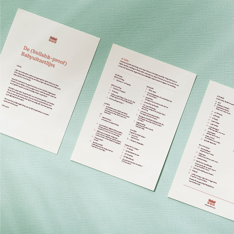 Geen overvolle kasten, geen overbodige spullen—gewoon een praktische lijst met alles wat écht van waarde is voor jou en je baby. Zonder slimme marketingtrucs die je van alles proberen aan te smeren.